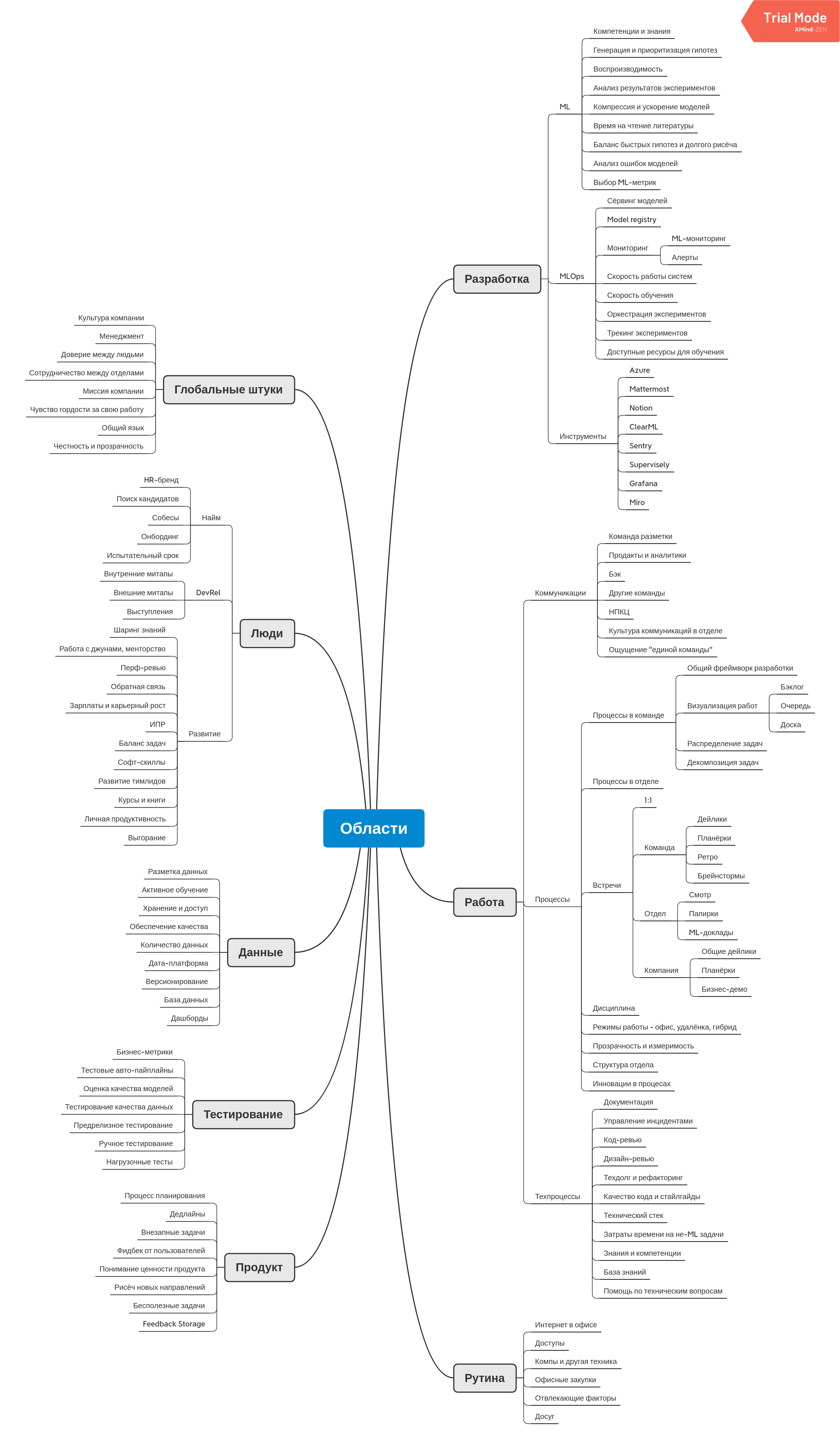 Я попробовал провести ретро среди лидов ML-команд по методу спусковых крючков. Набросал mind map с триггерами, распечатал 6 копий и принёс на встречу.