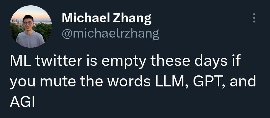 Как вы, наверное, заметили, формат канала не предполагает высказывания своего невероятно важного мнения по горячим в моменте темам. Однако, здесь сдержаться оказалось тяжело. Я почти каждый день захожу в Твиттер - и примерно половина моей ленты связана с ML. Последние несколько недель желание сидеть там монотонно уменьшается - вместо интересных обсуждений всё заполнено твитами про AGI, AI alignment и про то, как скоро нашему миру пиздец.