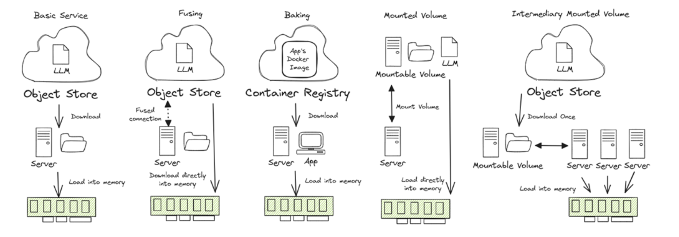 Читал тут книгу LLMs in Production, в одной из глав описывались плюсы и минусы разных способов получения контейнером весов большой модели. В компьютерном зрении модельки тоже бывают немаленькие, а ещё моделей в одном сервисе может быть много, поэтому тема важная для многих DL-щиков.