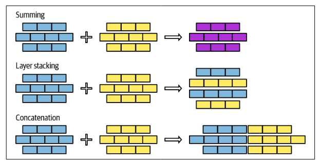 - Конкатенация - используется реже, так как не предоставляет особых преимуществ по сравнению с раздельным использованием моделей в плане памяти или скорости