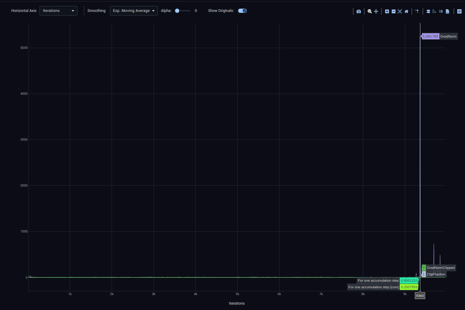 Мы активно используем Claude Code для анализа результатов экспериментов. Например, на выходных у меня всё никак не сходилась новая архитектура - в самом конце первой эпохе был взрыв градиентов.